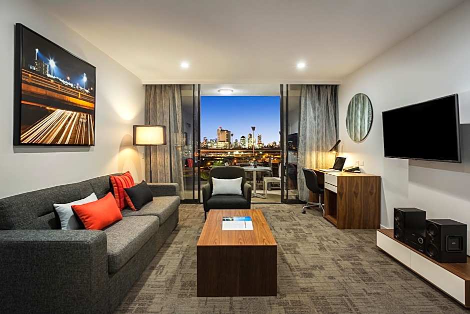 This apartment features a kitchenette with modern appliances, TVs with cable channels and a seating area with a work desk. Opening windows are included.